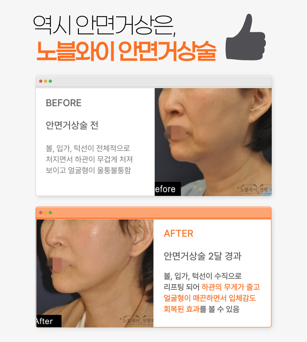 처진얼굴리프팅 효과가 명확하게