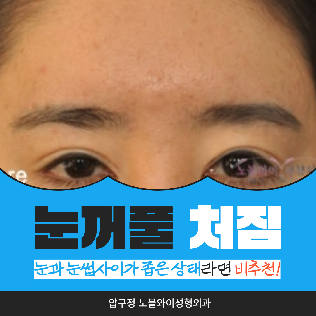 눈커풀이 당겨지면서 눈썹과의 거리가 더 좁아지게 되어