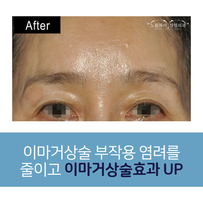 이마거상술 한 후에 얻을 수 있는 변화는 눈매개선, 눈썹 위치 교정, 이마주름, 눈과 눈썹사이 거리, 이마축소 등 눈두덩부터 위로 있는 부분에 해당됩니다. 눈끝이 리프팅이 되면서 짓물리는 문제가 사라지고, 쌍수를 하지 않았지만 쌍수한 느낌까지 그대로 받으실 수 있어요. 그래서 이마거상 자체라 여러가지 효과를 주는 걸로 만족도가 상당히 높은 편입니다.