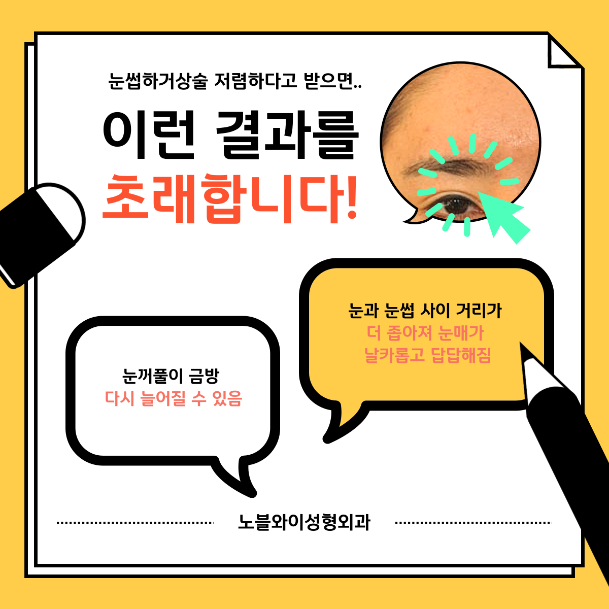 심한 경우에는 변해버린 눈매 때문에 재수술까지 고민하게 되기도 합니다.