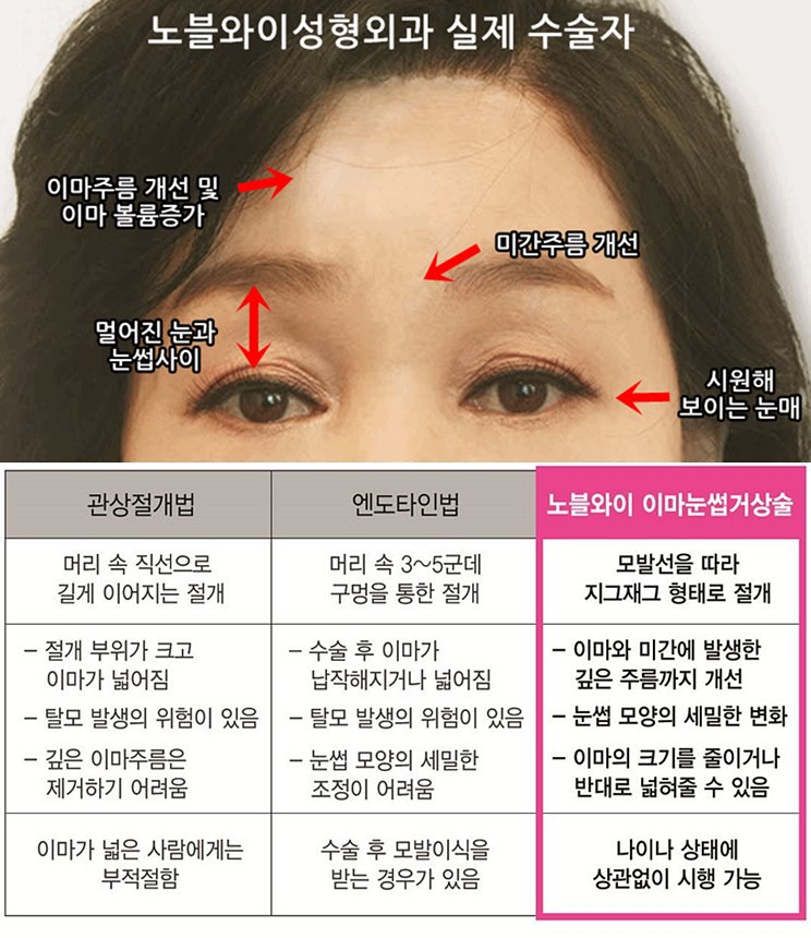 수술 뒤에 여전히 눈썹은 안올라가있다거나
