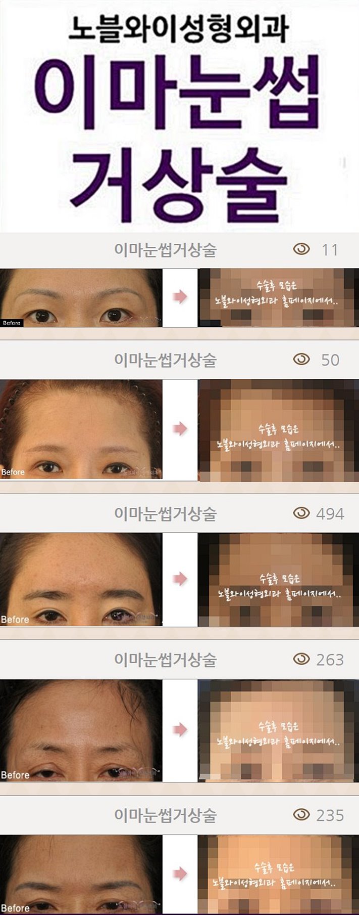 ○ 이마눈썹거상 전/후 사진보기(클릭)○