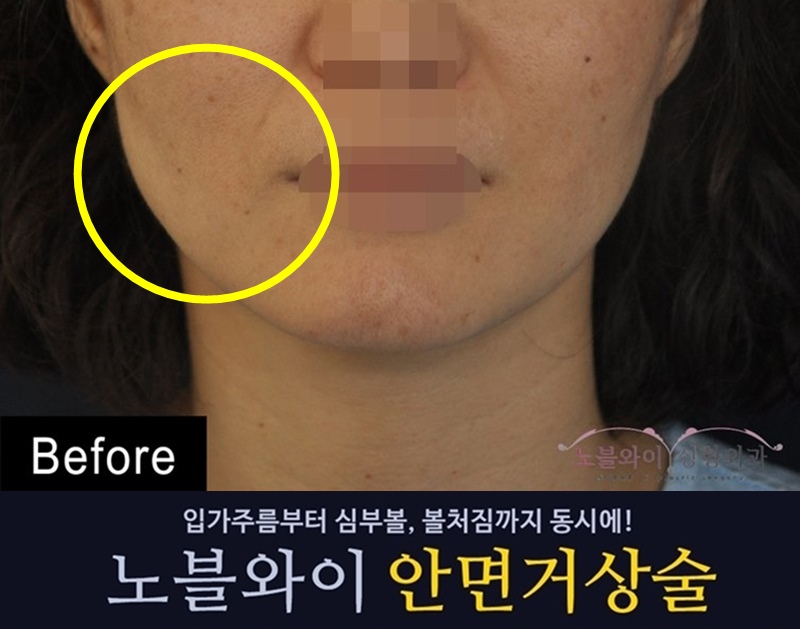 처진 볼살과 입옆 심부볼,