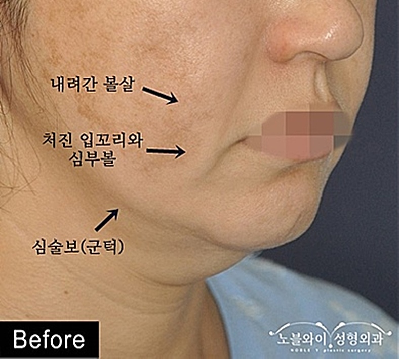 수술 후에는 입 옆 심부볼 처짐, 입꼬리 처짐,