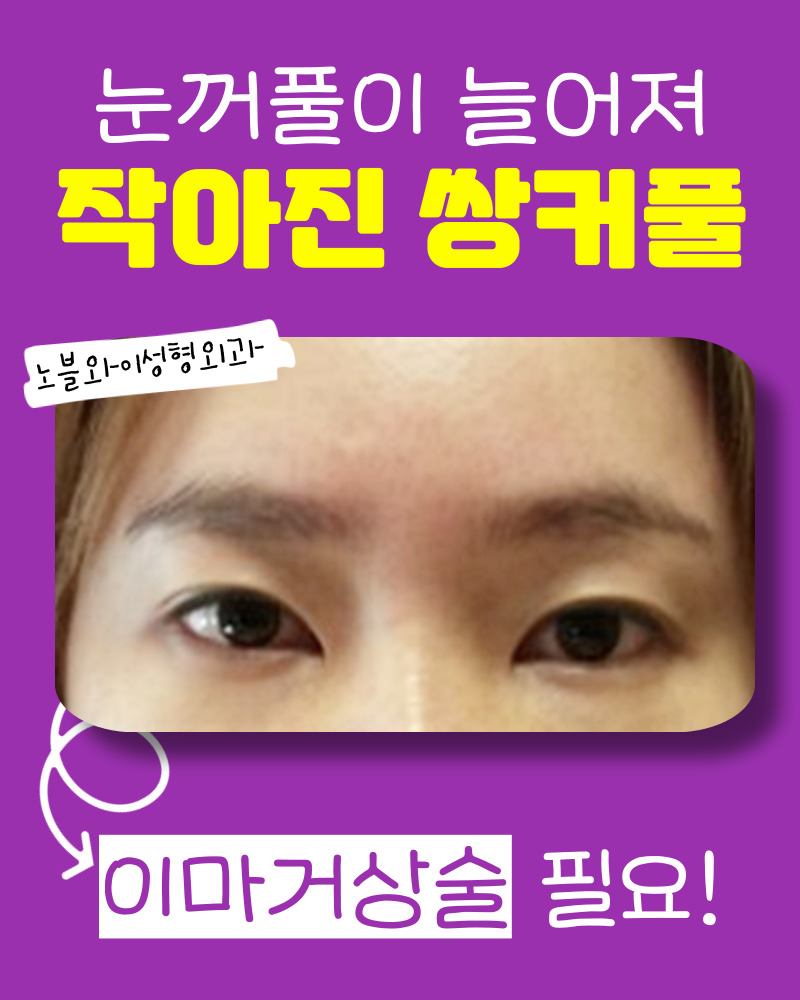 (※만약 눈과 눈썹사이가 멀고 눈커풀이 처진 경우는